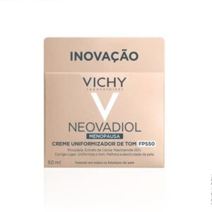 O Neovadiol Creme Uniformizador de Tom FPS50 reduz os impactos da pele na menopausa aumentando a elasticidade, firmeza, nutrição e redução de rugas. Com uma textura creme leve, possui rápida absorção e leve fragrância.