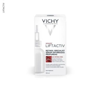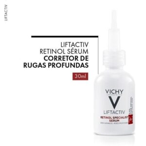 Sérum facial. Vichy Liftactiv Retinol Specialist reduz todos os tipos de rugas, inclusive as mais profundas e persistentes, e suaviza a pele.